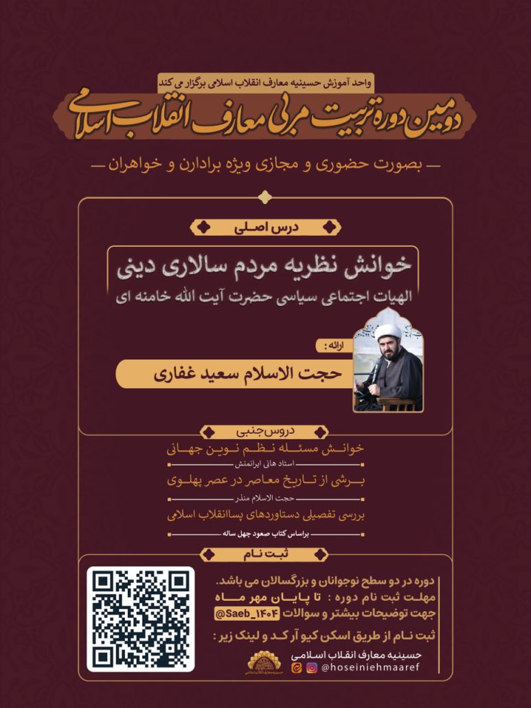واحد آموزشی حسینیه معارف انقلاب اسلامی برگزار می کند.