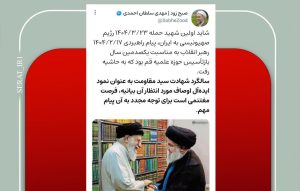 ▫️شاید اولین شهید حمله ۱۴۰۴/۳/۲۳ رژیم صهیونیسی به ایران، پیام راهبردی منتشر شده در ۱۴۰۴/۲/۱۷ رهبر انقلاب به مناسبت یکصدمین سال بازتأسیس حوزه علمیه قم (https://farsi.khamenei.ir/amp-content?id=60122) بود که به حاشیه رفت.